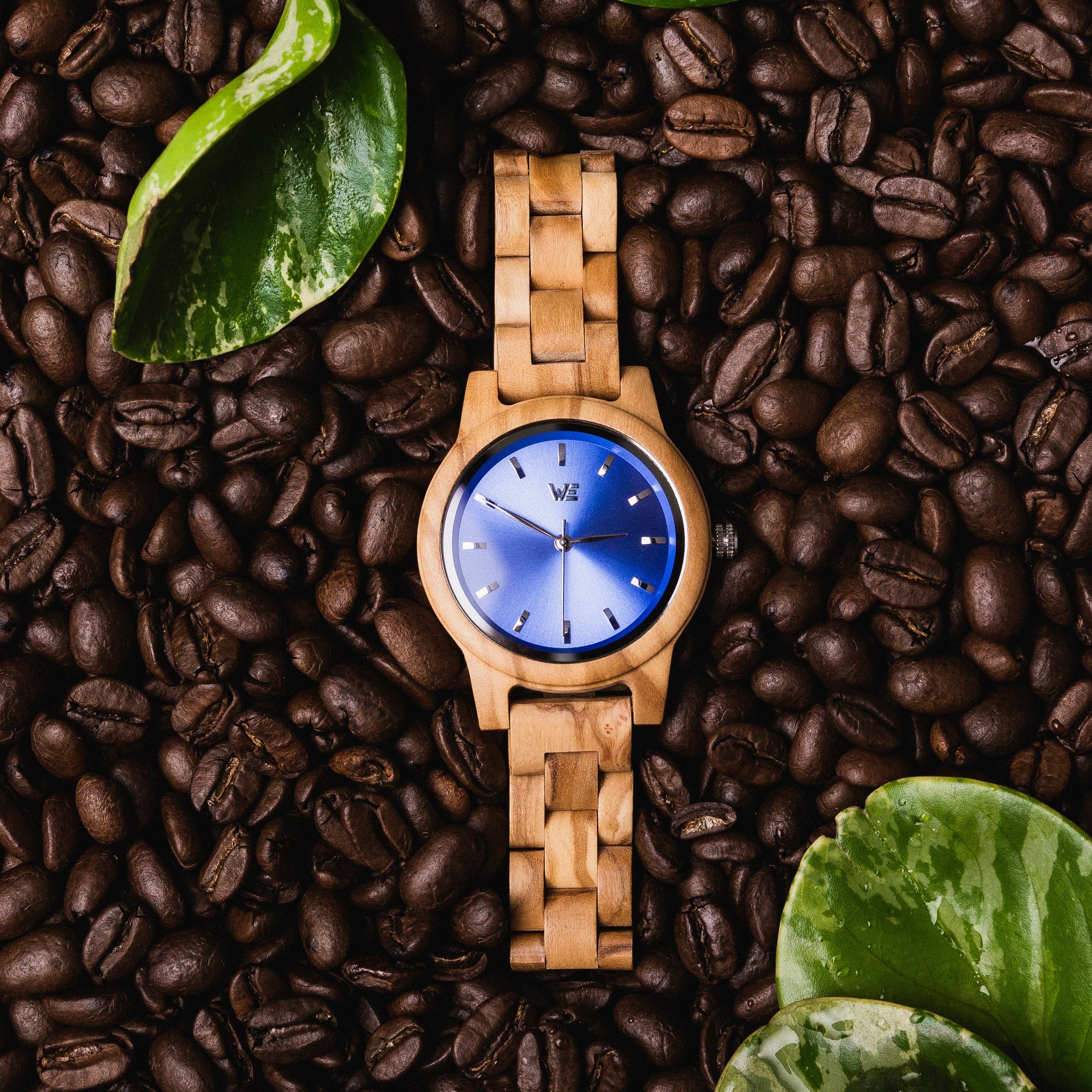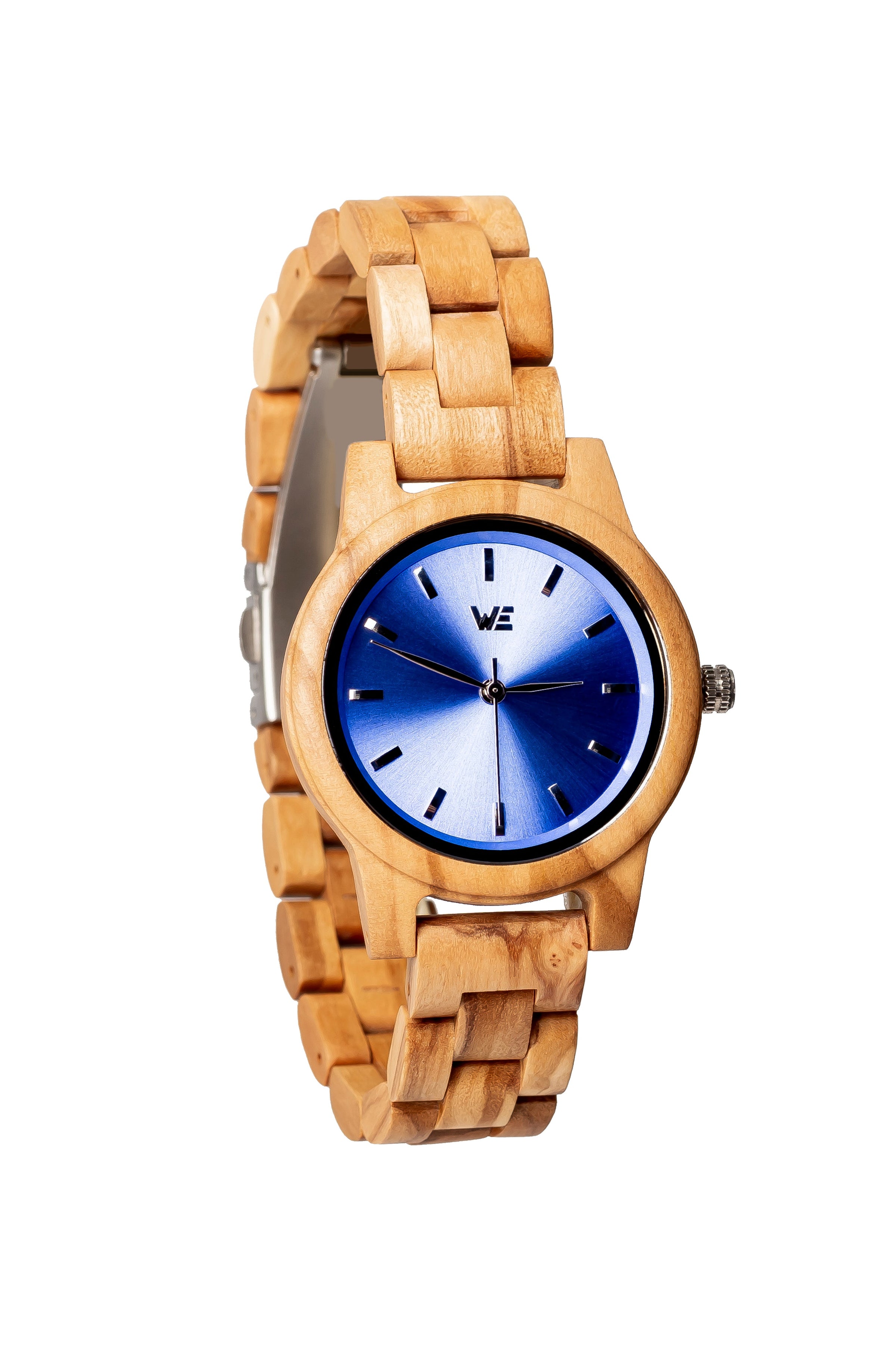This handcrafted wrist watch features an all wooden band made from natural Olive wood.