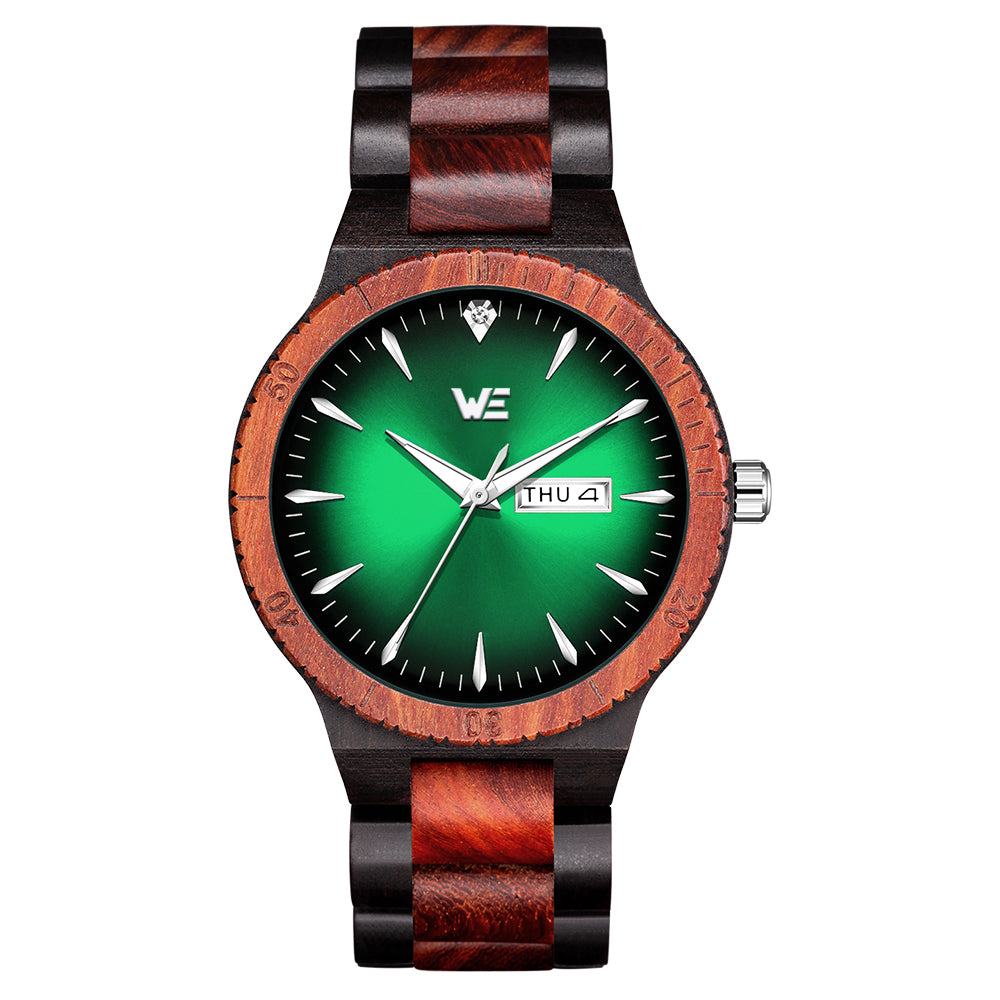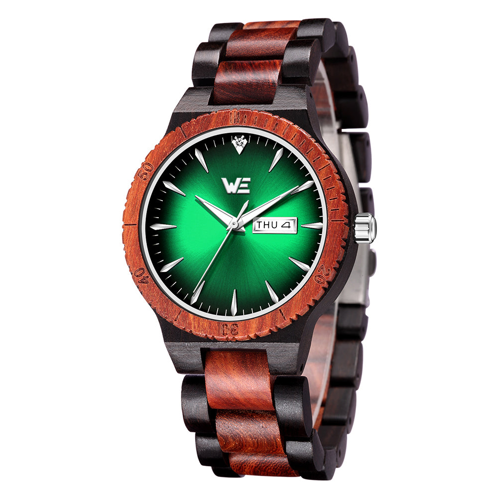This handcrafted wrist watch features an all wooden band made from Red and Black Sandalwood.
