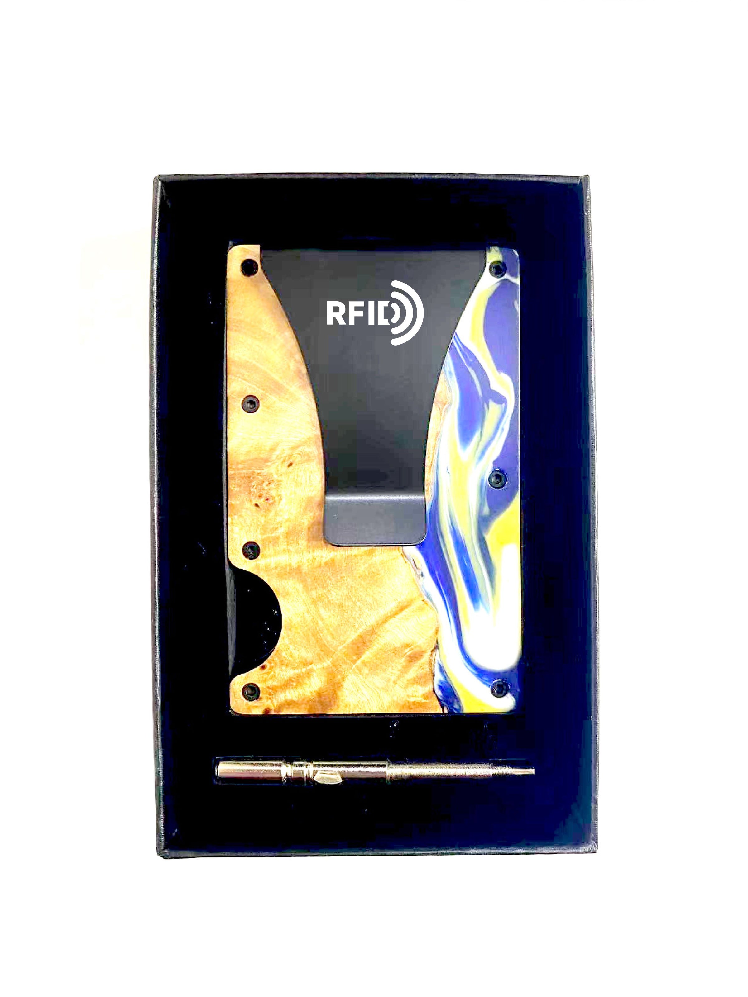 Wood and Resin Smart Wallet (Gold + Royal Blue + White)