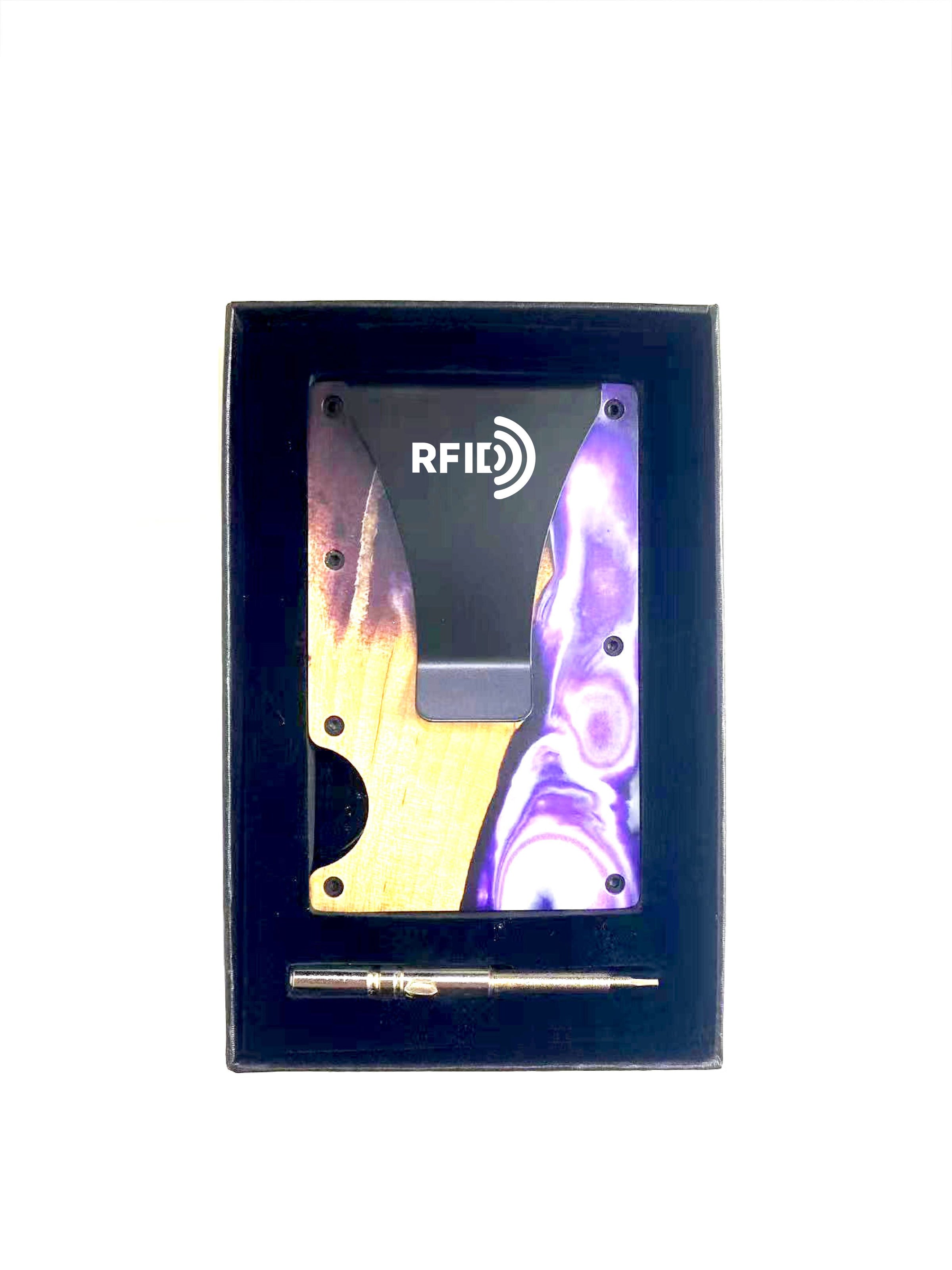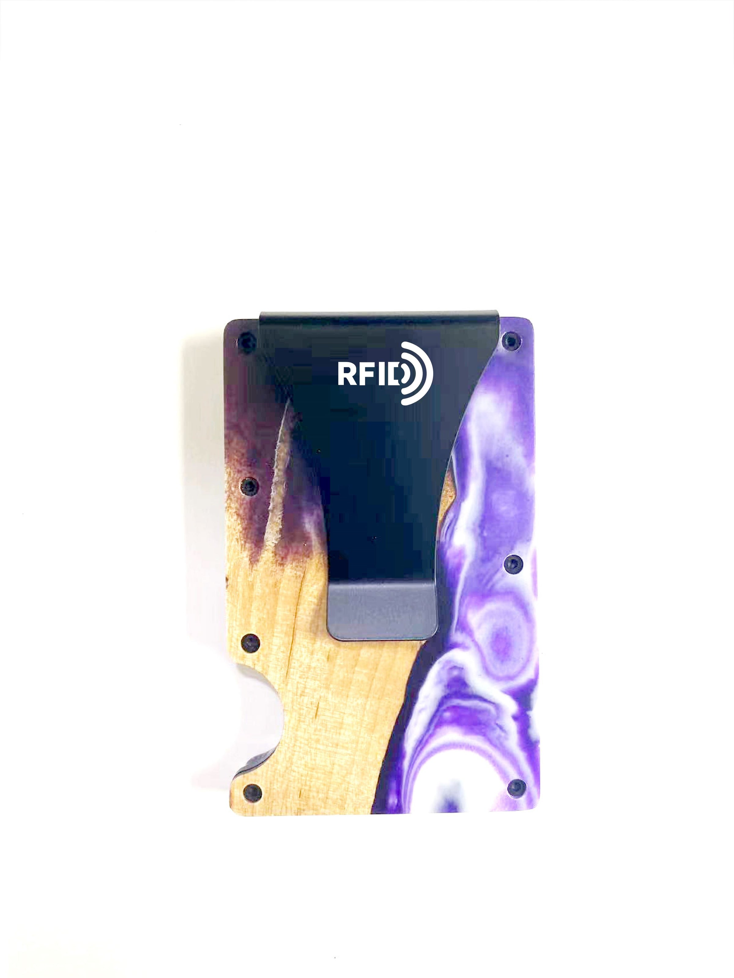 Wood and Resin Smart Wallet (Violet & White)